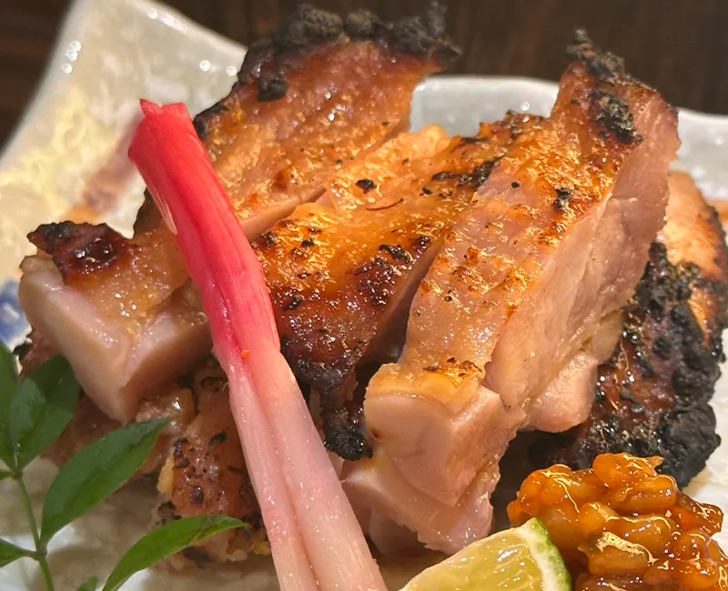 軍鶏の良いところを活かした地鶏を自家製の味噌で漬けました。